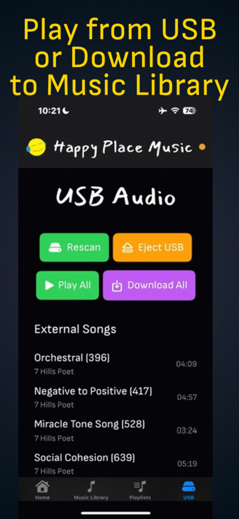 Easily manage your music stick connection. Choose to play directly from the drive or download your songs with a simple click of a button.